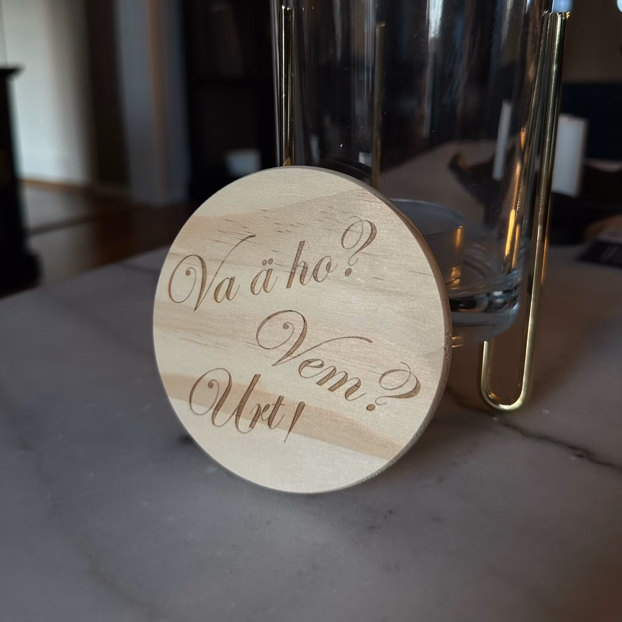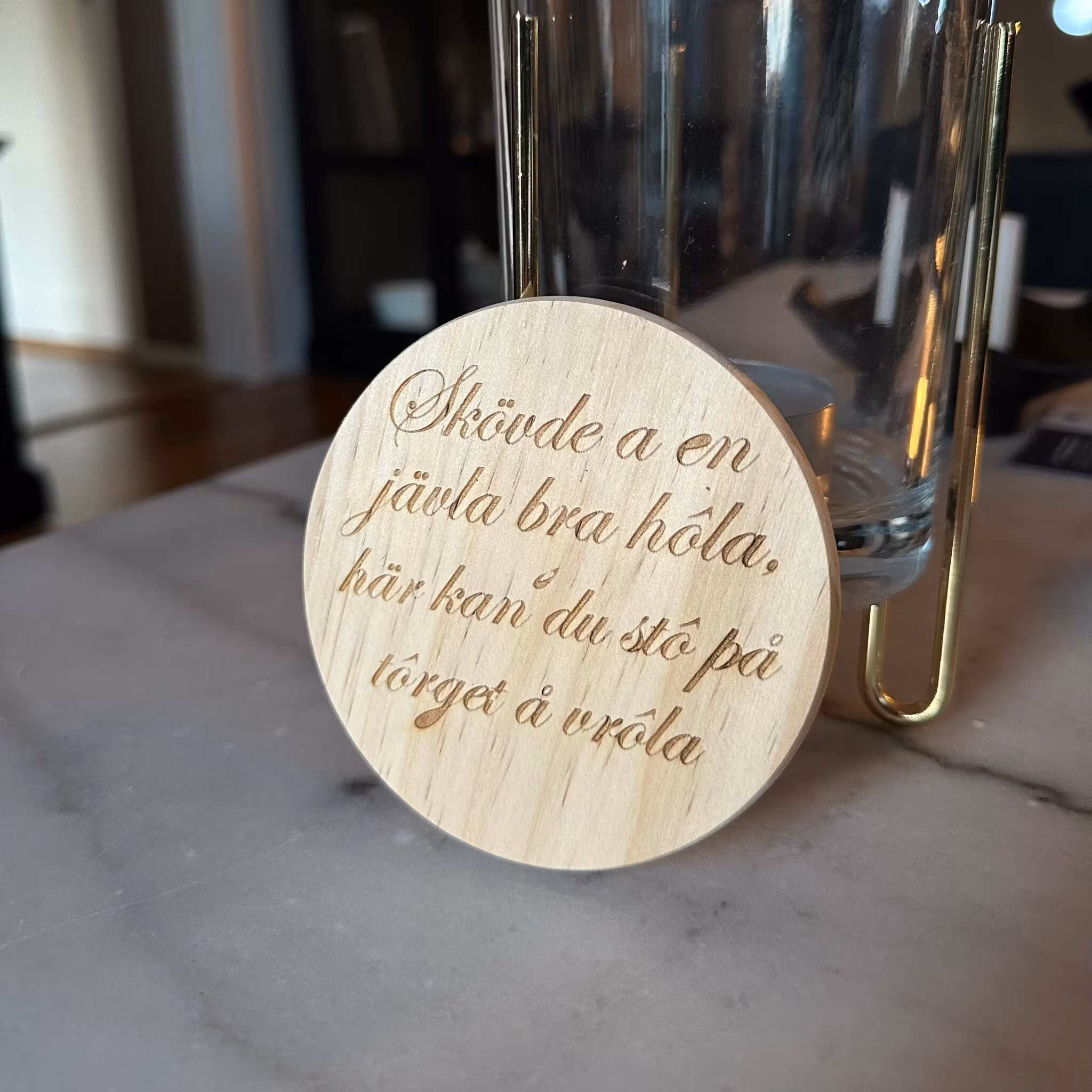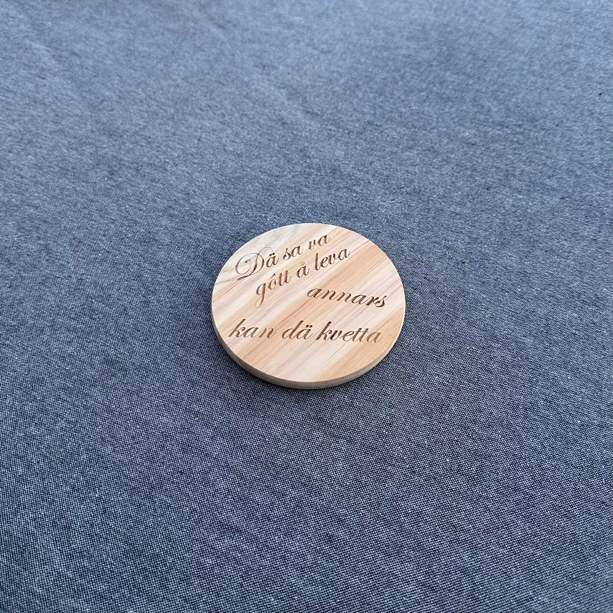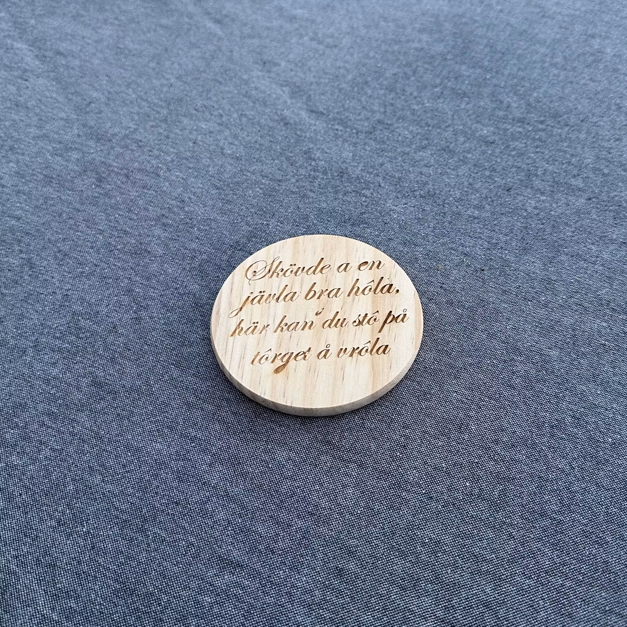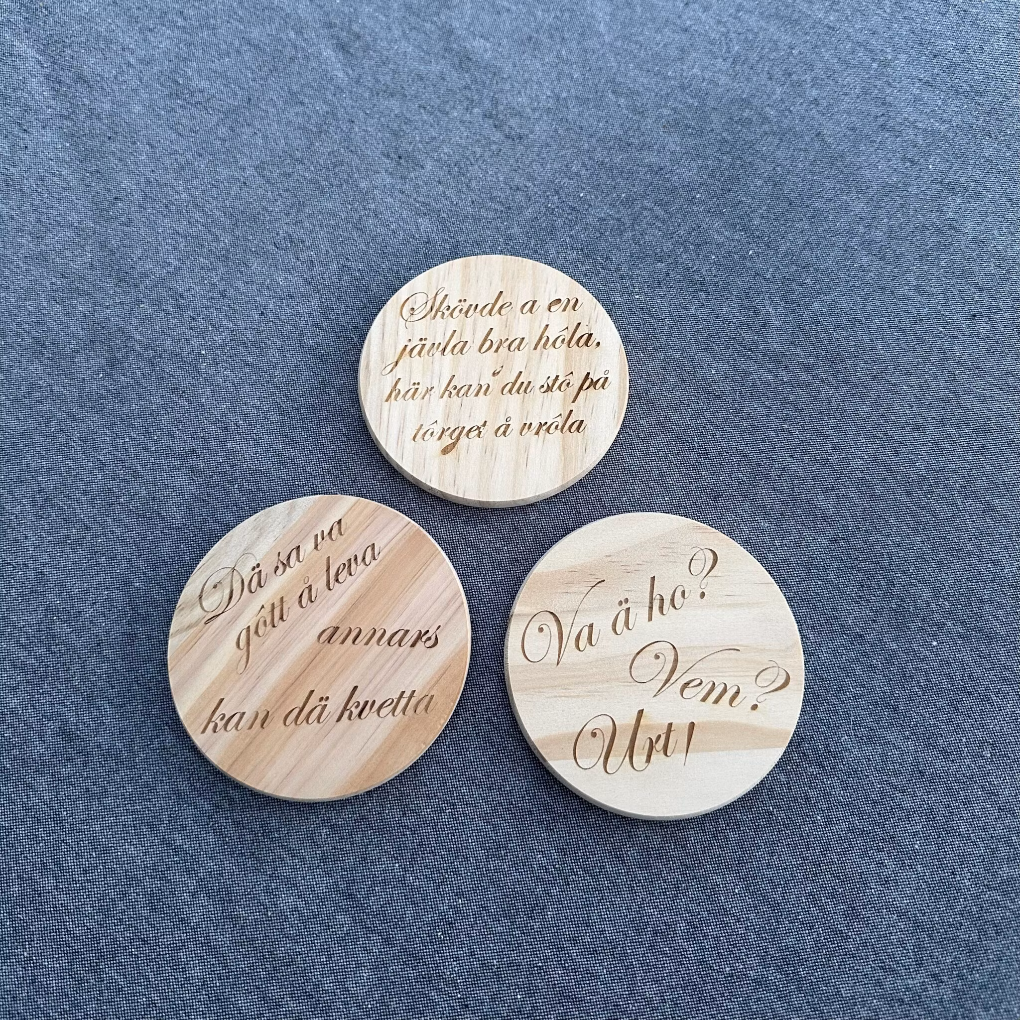 Ge fikastunden en extra dos lokal charm med våra träunderlägg med ingraverade citat från Skaraborg. Varje underlägg bär på ett välkänt uttryck eller ett humoristiskt citat som väcker igenkänning och leenden runt bordet. Tillverkade i furu av hög kvalité med ingraverad text som framhäver både känsla och kvalitet. Perfekta som present, souvenir eller som en personlig detalj i hemmet . För alla som har Skaraborg i hjärtat.