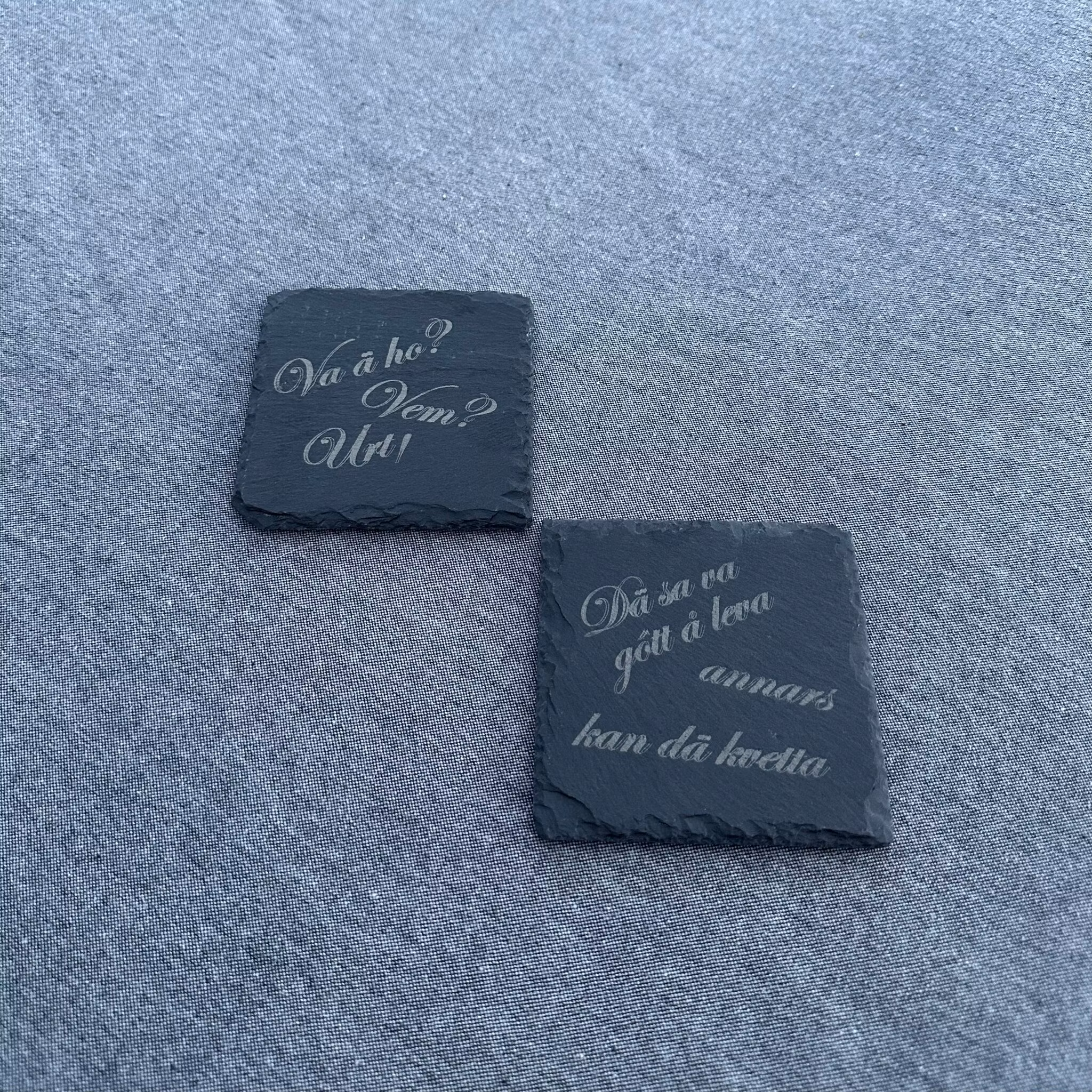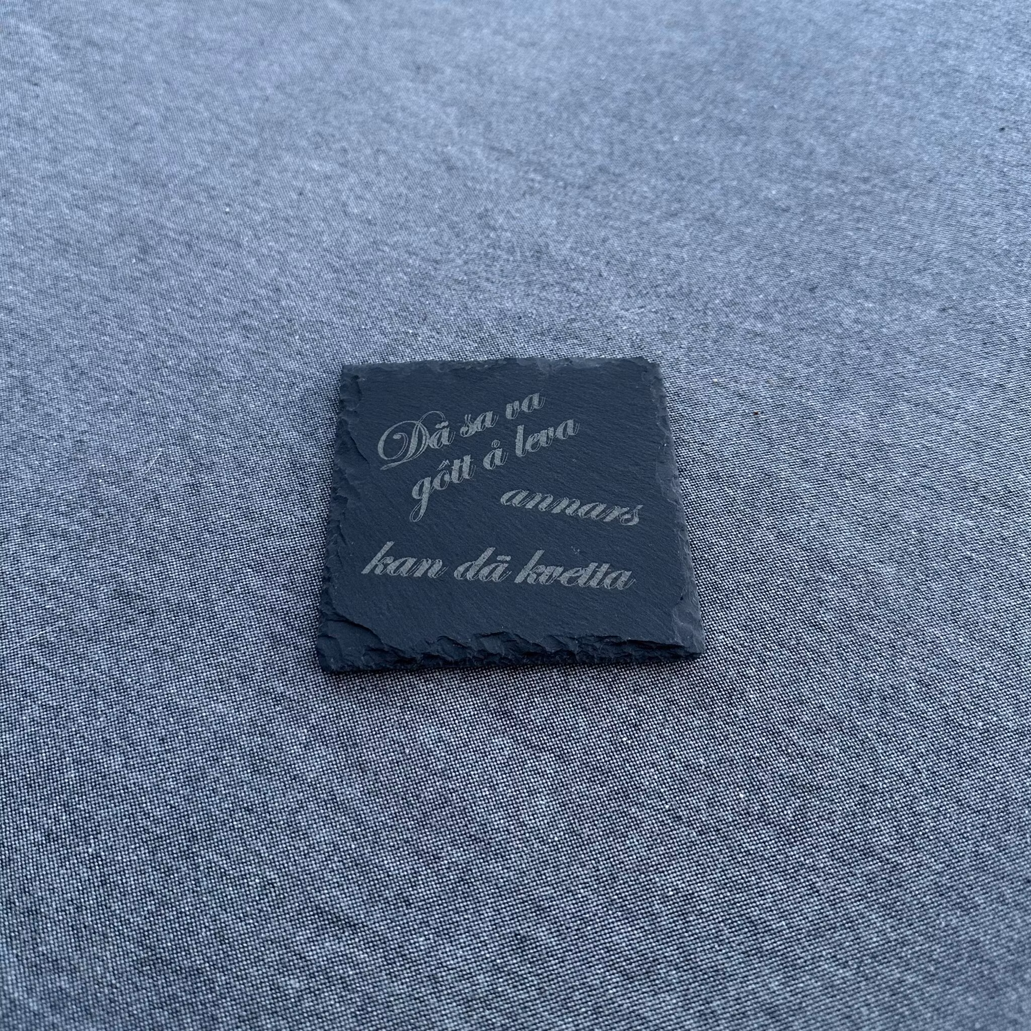 Lyft fikastunden med stil och humor! Våra dryckesunderlägg i sten har ingraverade citat från Skaraborg, välkända uttryck som sprider både glädje och lokal stolthet. Den släta och svala stenen ger en elegant känsla och skyddar bordet effektivt mot värme och fukt. En perfekt present, souvenir eller personlig detalj för alla som har Skaraborg nära hjärtat. Kommer med tassar monterade.
