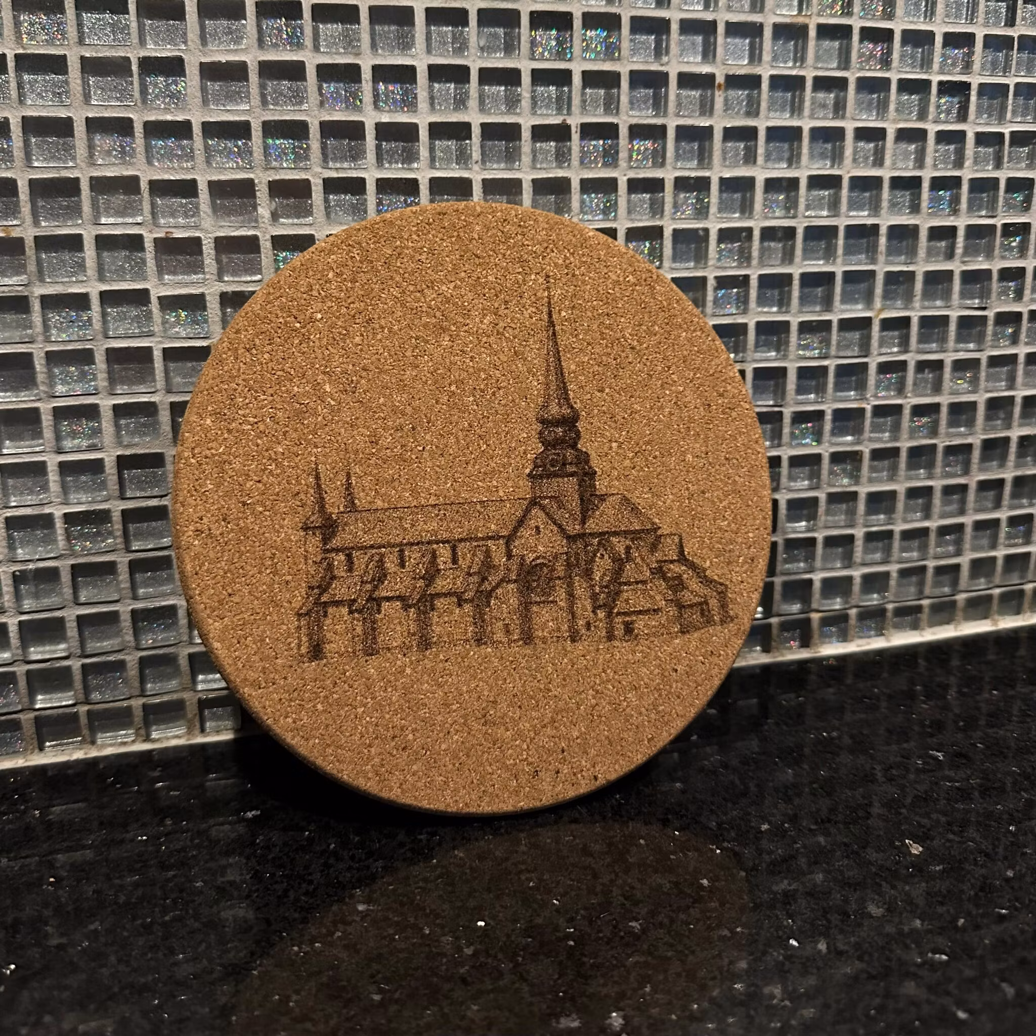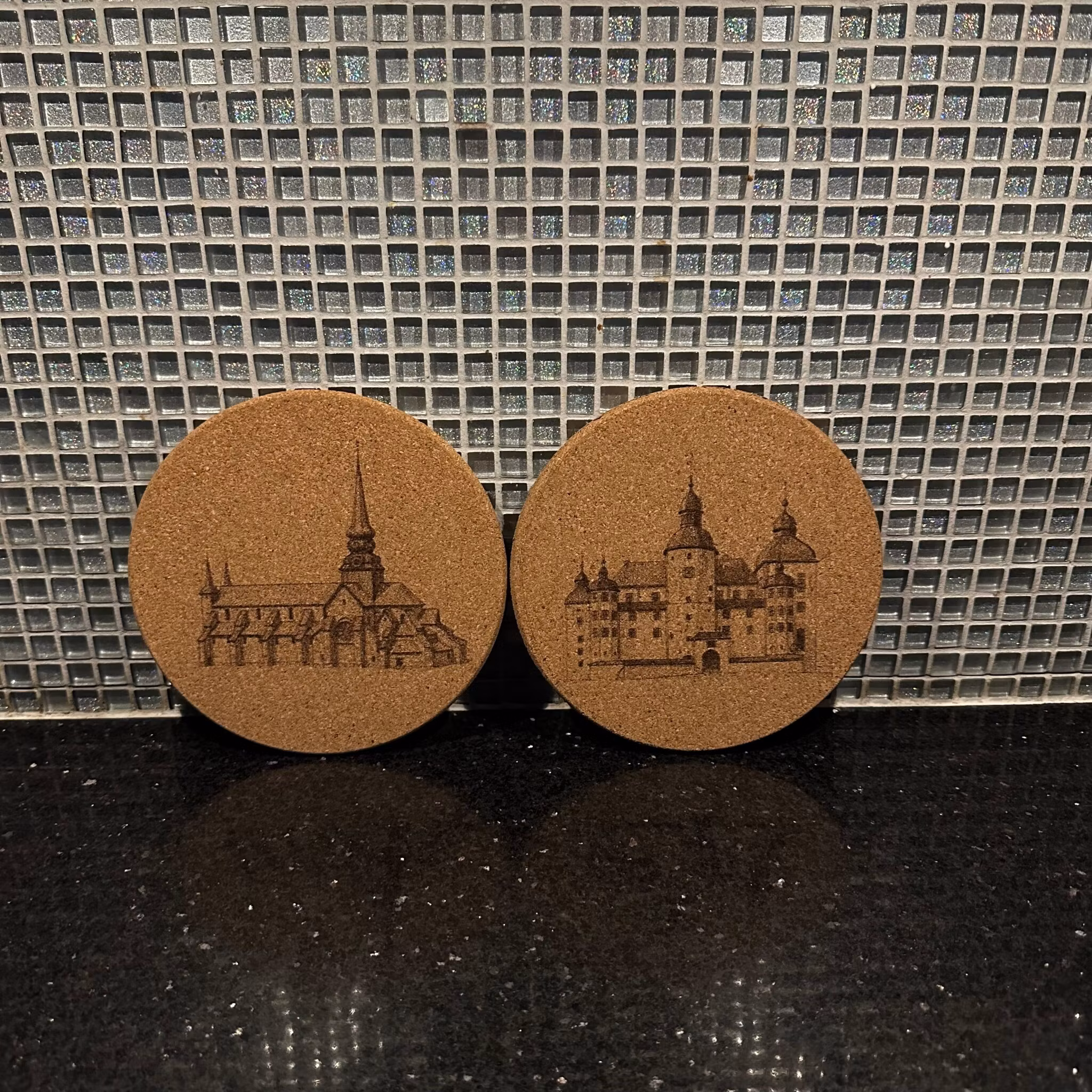 Skydda bordet med stil och lokal charm! Våra grytunderlägg i högkvalitativ kork har detaljerade lasergraverade motiv av Varnhems klosterkyrka och Läckö slott. Två ikoniska landmärken från Skaraborg. Med en diameter på 19 cm och en tjocklek på 1 cm är de perfekta för kastruller och grytor. Kork är ett naturmaterial som är värmetåligt och skonsamt mot bordsskivor samtidigt som det ger en naturlig och elegant look. Perfekta som present, souvenir eller för dig som vill ha en bit av Skaraborg hemma.